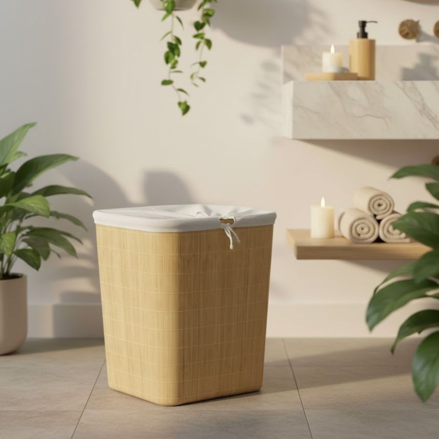 O Cesto de Bambu Retangular com Forro é um item versátil e elegante, ideal para organização e decoração de ambientes diversos. Produzido em bambu natural, oferece resistência e durabilidade, enquanto o forro interno protege os objetos e facilita a limpeza, sendo perfeito para guardar roupas, brinquedos, mantas ou itens domésticos.