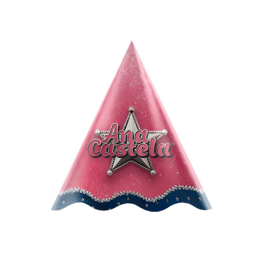 O Chapéu de Aniversário com o tema Ana Castela é uma ótima opção para completar a fantasia e o visual dos convidados em festas infantis. Com design encantador e cores vibrantes, ele traz a personagem e elementos do universo de Ana Castela, tornando a festa ainda mais divertida e personalizada.