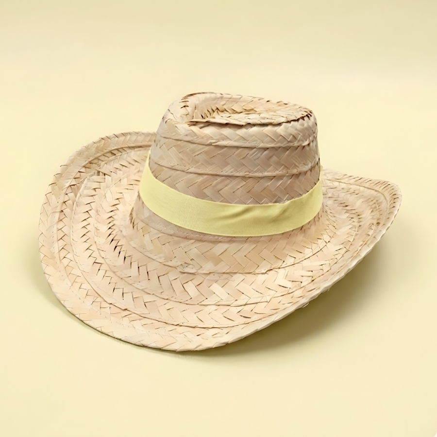 Chapéu confeccionado em palha, com acabamento em fita decorativa na cor amarela. Possui dimensões aproximadas de 36cm de largura, 35cm de comprimento e 12cm de altura. Indicado para uso adulto em festas e eventos temáticos. Por se tratar de material natural, pode apresentar variações de tonalidade e textura. Recomenda-se evitar contato com água ou umidade excessiva para preservar a estrutura e durabilidade do produto.