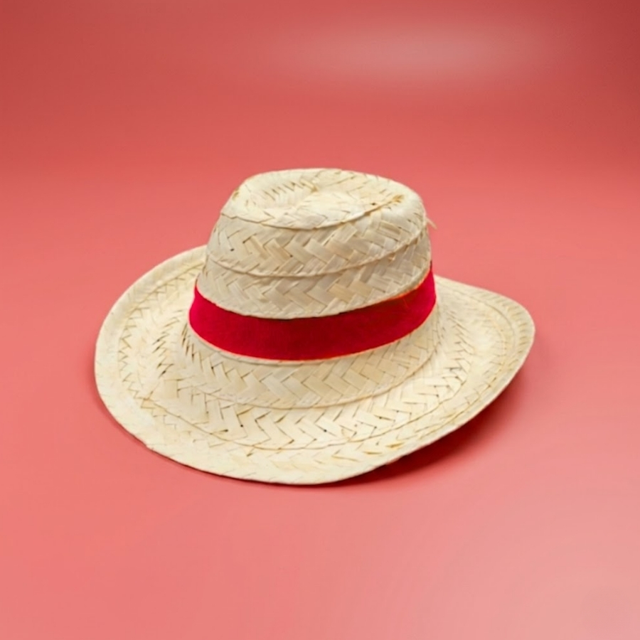 Chapéu confeccionado em palha, com acabamento em fita decorativa na cor vermelha. Possui dimensões aproximadas de 31cm de largura, 30cm de comprimento e 10,5cm de altura. Indicado para uso infantil em eventos e atividades recreativas. Por ser um produto de material natural, pode apresentar variações de tonalidade e textura. Recomenda-se evitar contato com água ou umidade excessiva para preservar a estrutura e durabilidade do produto.