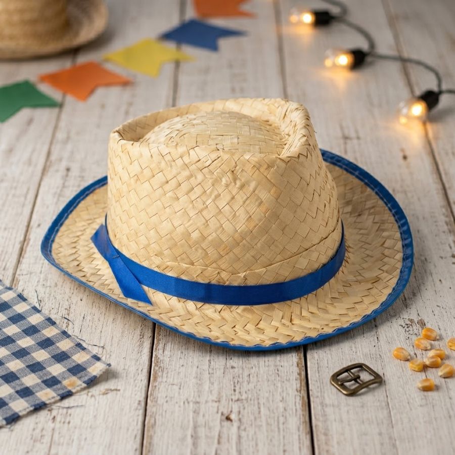 O Chapéu de Palha Malandrinho - Azul - 12x27cm é um acessório decorativo feito em palha, com design compacto e cor azul. Ideal para festas juninas, fantasias e decoração temática, é leve, versátil e fácil de personalizar.