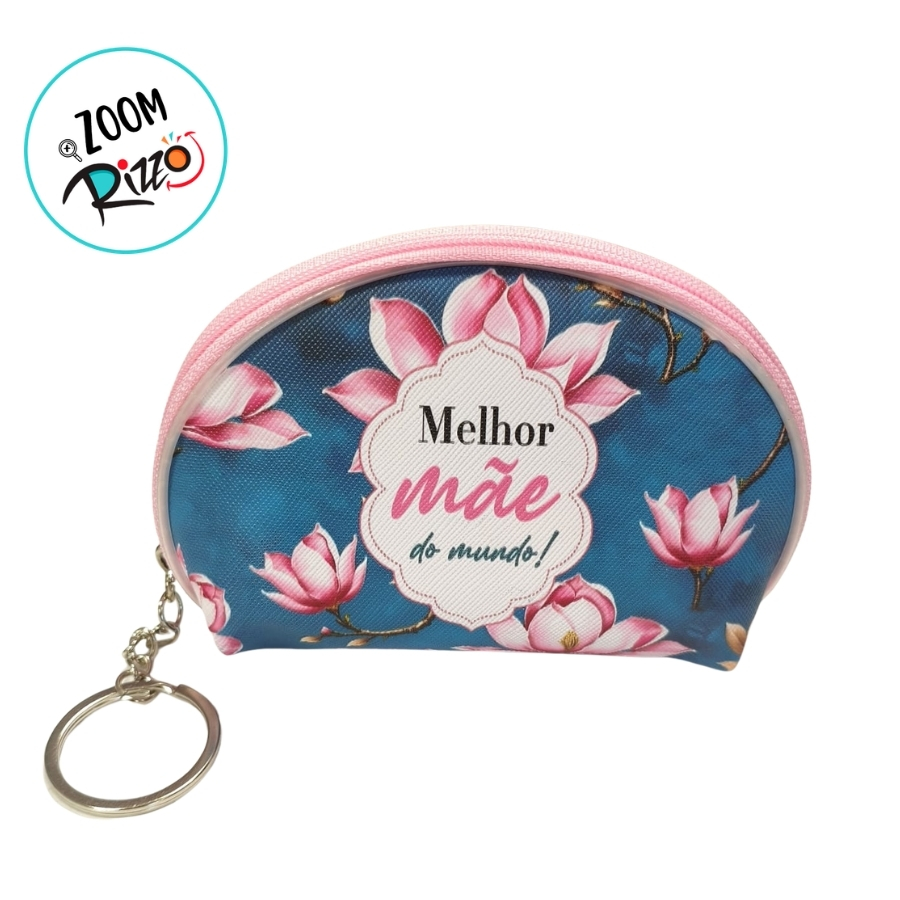 Chaveiro bolsinha porta moedas fabricado em material resistente nas cores azul escuro e rosa, com dimensões aproximadas de 11cm x 7cm x 3cm. Possui estampa com a frase “Melhor Mãe do Mundo”. Indicado para armazenamento de moedas, pequenas notas e objetos de pequeno porte. Não é resistente à imersão em água. Para limpeza, utilizar pano macio levemente umedecido e evitar produtos abrasivos para preservar a estampa e o material.