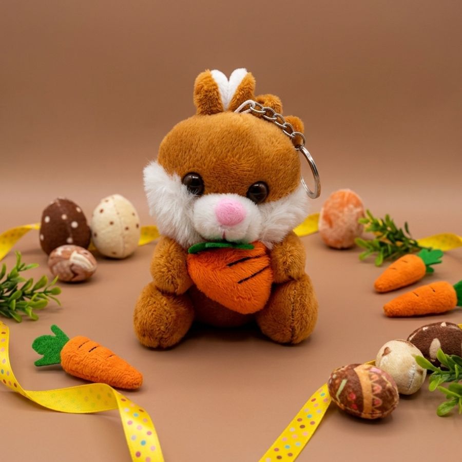 Chaveiro em formato de coelho de pelúcia na cor marrom