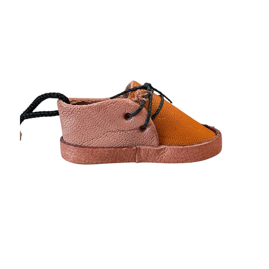 Chaveiro em formato de mini tênis com 6,5cm, feito com material similar ao couro e disponível em 4 cores. Perfeito para lembrancinhas criativas em festas juninas ou temáticas.