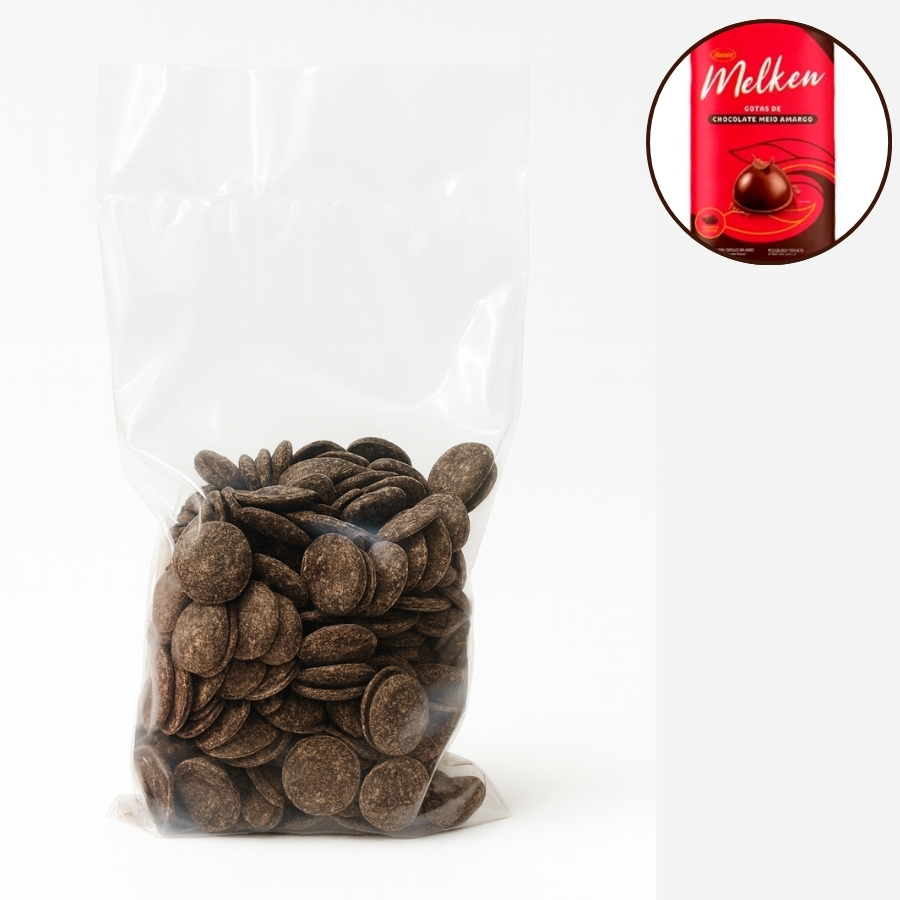 Pacote de 500g Chocolate em Gotas Meio Amargo Melken