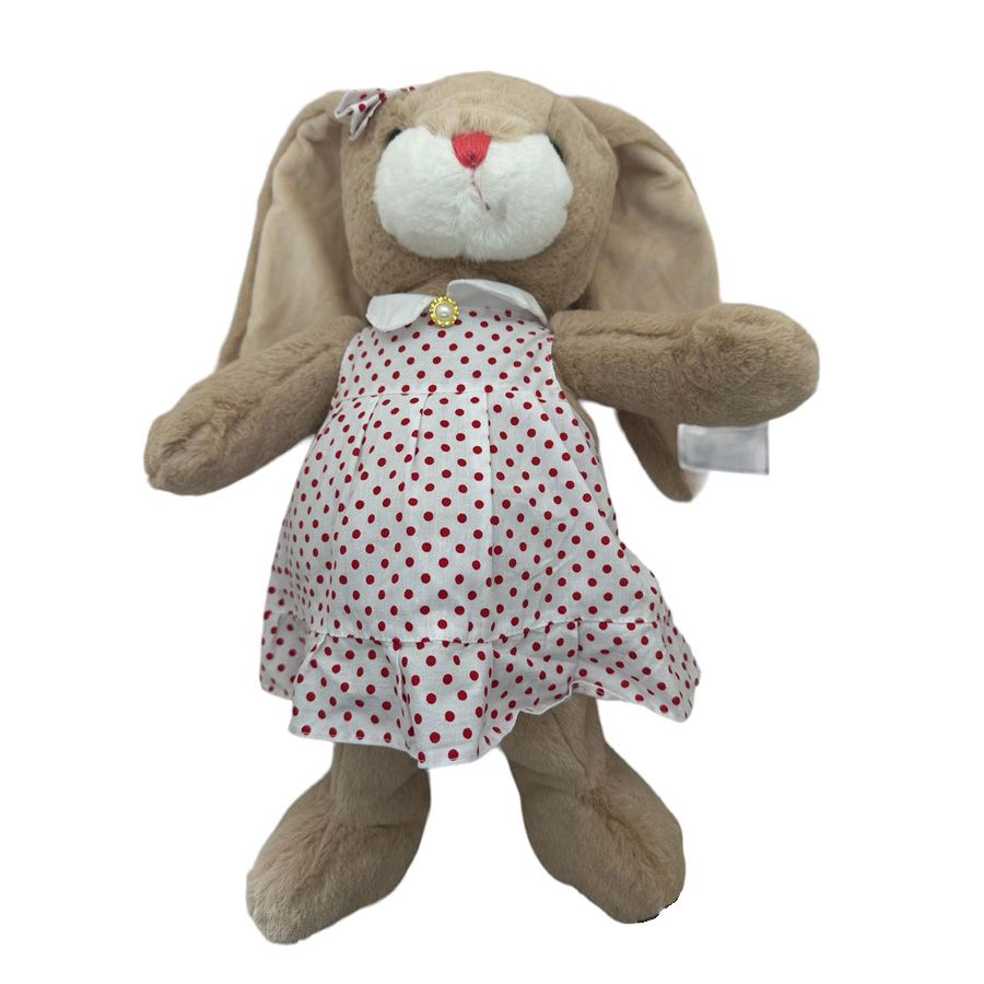 Com 42cm de altura, este brinquedo oferece horas de diversão e imaginação. Seja como uma amiga para brincar ou como parte da decoração do quarto, a "Coelha de Pelúcia com Vestido Pontilhado Vermelho" adiciona um toque de doçura e estilo para qualquer ambiente.