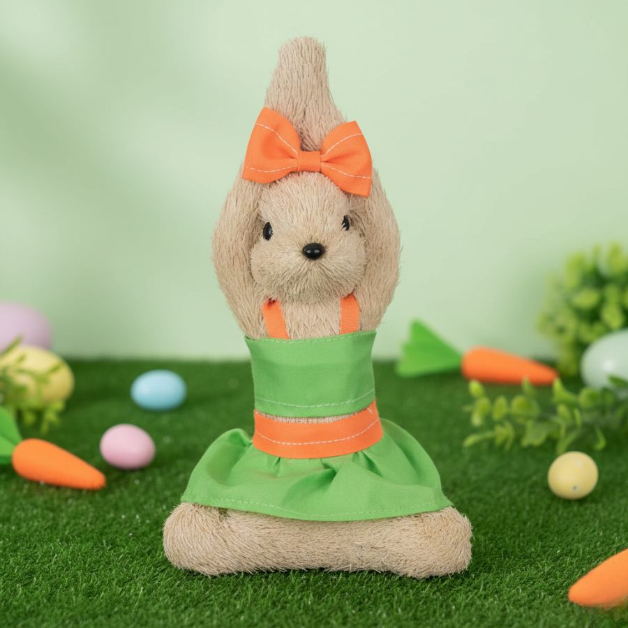A coelha é leve e fácil de transportar. Ela possui tamanho ideal para ser utilizada em diversos ambientes, como mesas, estantes, prateleiras e até mesmo em árvores e guirlandas.