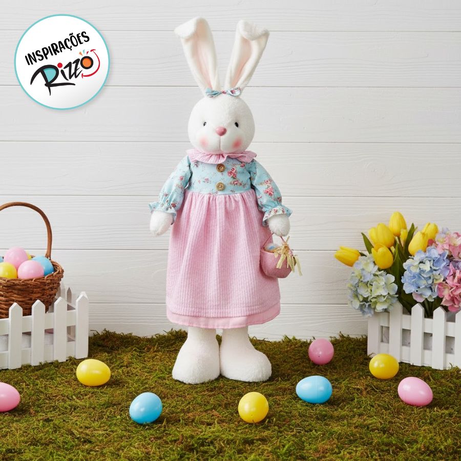 Coelha em Pé Jardim Cestinha - 69cm x 16cm x 16cm - Linha Vanilla - Cromus Páscoa - Rizzo Embalagens
