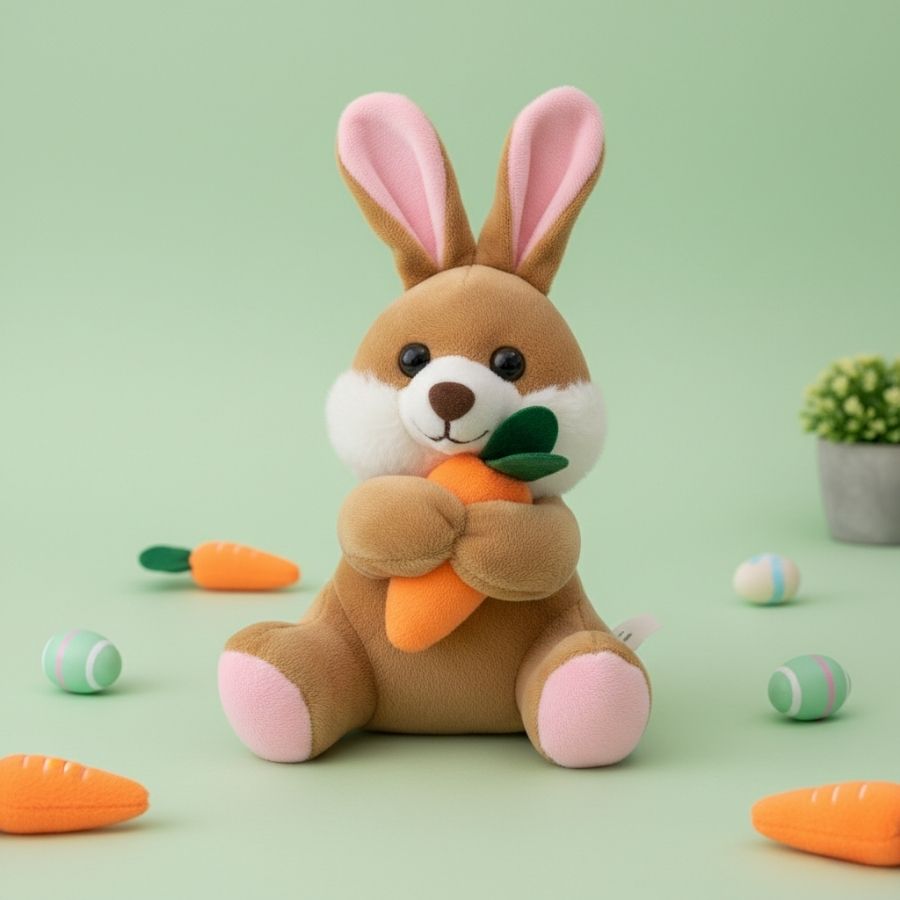 O Coelho de Pelúcia Abraçando Cenoura é um item decorativo e presenteável, ideal para composição de ambientes, vitrines, cestas e kits temáticos. Confeccionado em pelúcia macia, possui 22 cm de altura e é indicado para uso em decorações artesanais, produções sazonais e projetos criativos. Seu design delicado, com a cenoura posicionada junto ao corpo, transmite carinho e aconchego, agregando valor ao trabalho de artesãos, ateliês e pequenos produtores.