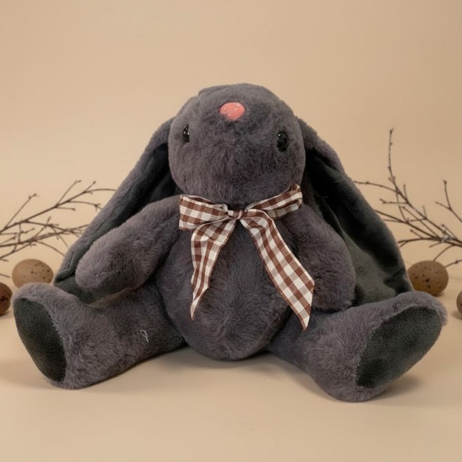Sofisticado, acolhedor e cheio de personalidade, o Coelho de Pelúcia Cinza Escuro Sentado com Laço Xadrez Marrom traz um visual elegante que foge do óbvio na decoração de Páscoa. A combinação do tom cinza escuro com o laço xadrez cria uma estética moderna e aconchegante, perfeita para composições mais refinadas, vitrines impactantes e presentes cheios de significado.