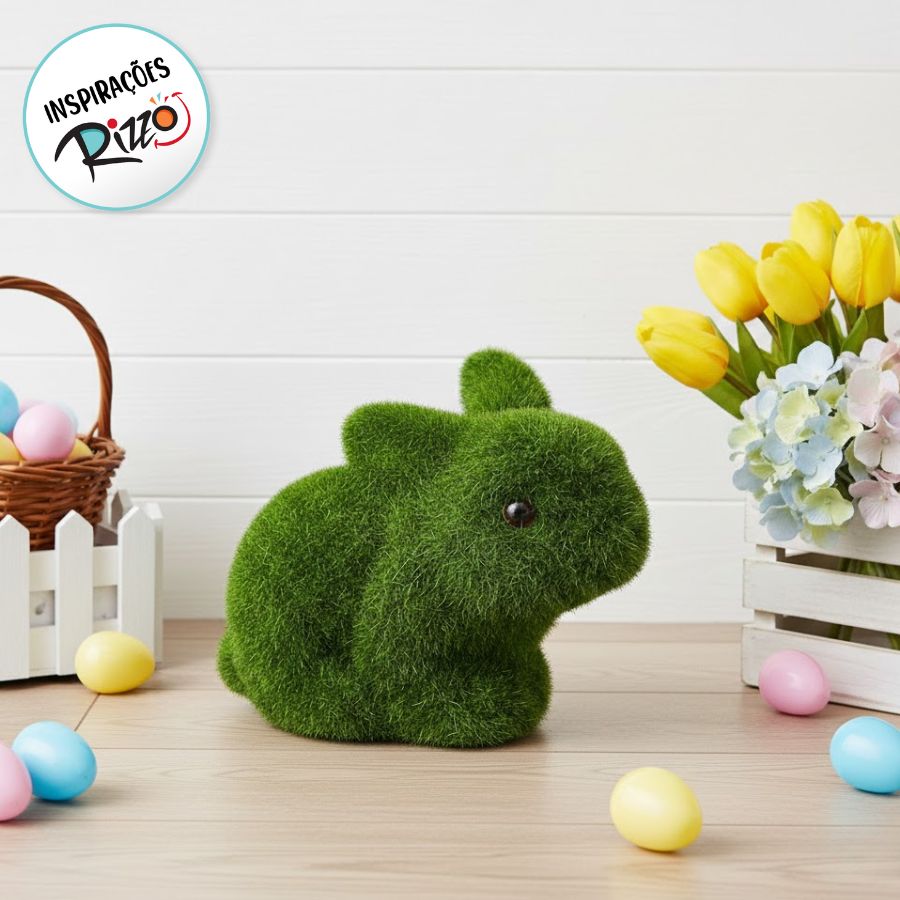 Coelho Decorativo feito de isopor coberto por textura que imita grama
