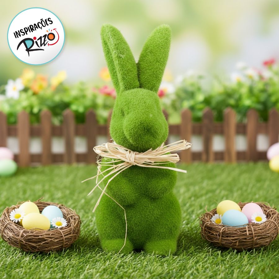 O Coelho Decorativo de Grama em Pé com Laço de Palha - 21cm é um item charmoso e sofisticado para quem deseja criar um ambiente pascoal encantador. Produzido com material que imita grama, ele traz um aspecto natural e autêntico, adicionando um toque rústico e elegante à decoração. Seu laço de palha complementa o design, proporcionando um detalhe delicado e harmonioso.