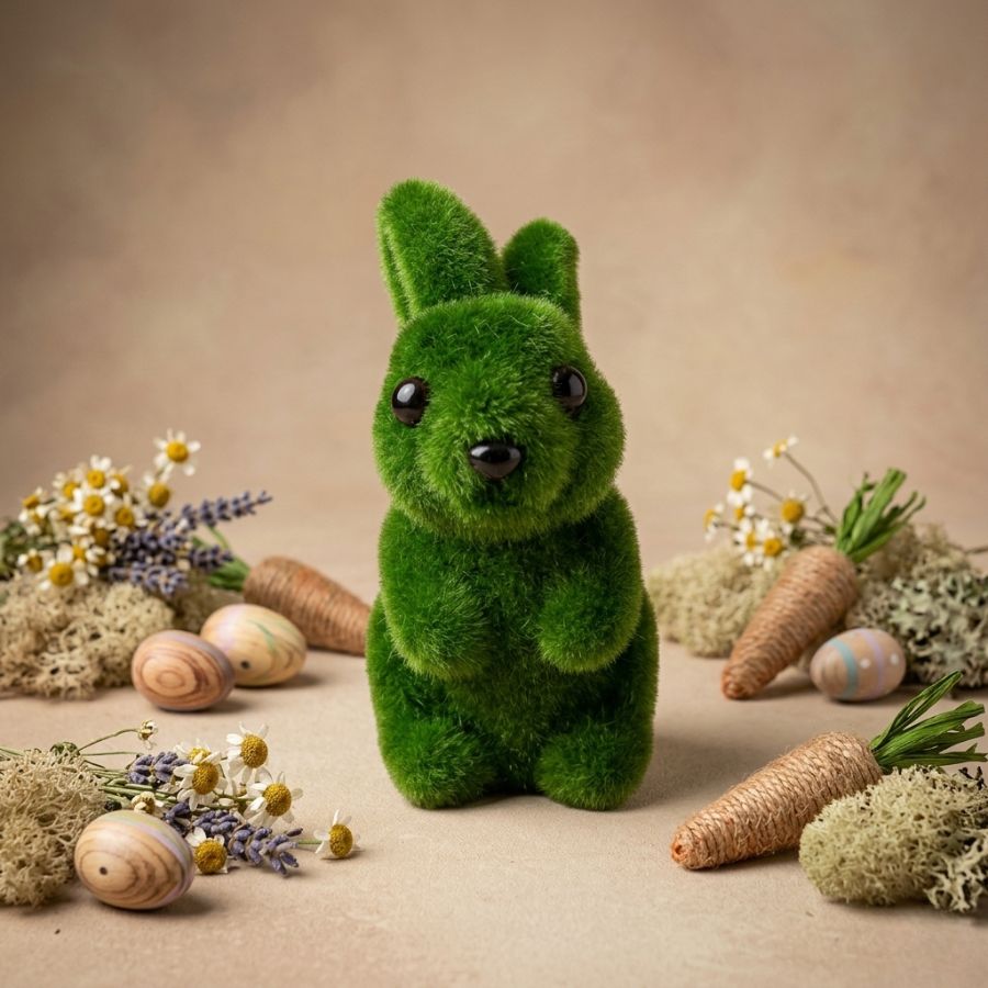 Coelho Decorativo feito de isopor coberto por textura que imita grama