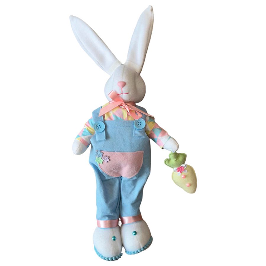 Com seus detalhes cuidadosamente trabalhados, como o macacão em tons suaves de azul e os detalhes em rosa, essa coelha decorativa é uma escolha encantadora para a decoração de quartos infantis, áreas de brincar ou mesmo para celebrar a Páscoa de uma maneira única e graciosa.