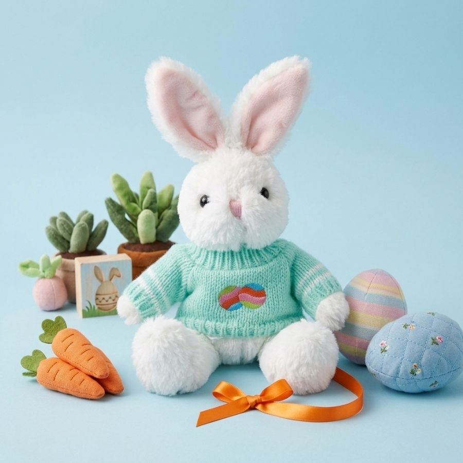 Coelho Pelúcia Branco com Suéter - 1 Unidade - Cromus - Rizzo Embalagens.