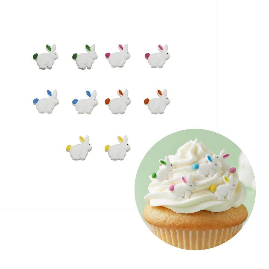 Confeitos de açúcar coloridos artificialmente, com o formato de coelho ; ideal para você fazer lindas decorações em bolos, cupcakes, docinhos e muito mais. Deixe seus eventos com um toque muito mais sofisticado e elegante.