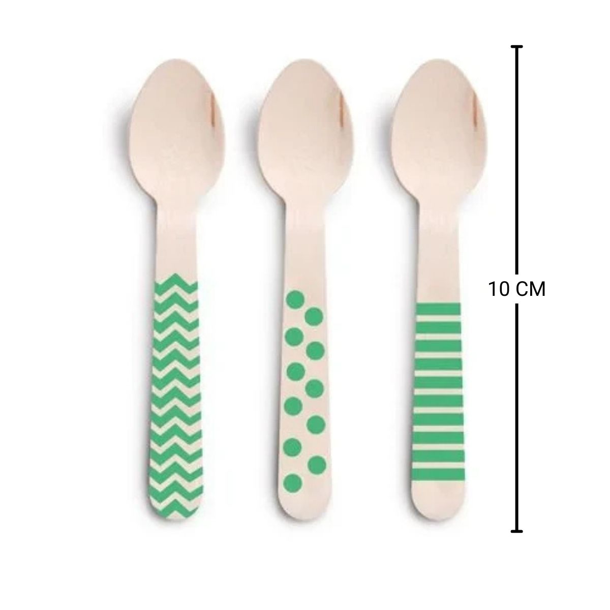Colher de Madeira Decorada Verde - 08 unidades - Cromus - Rizzo Festas