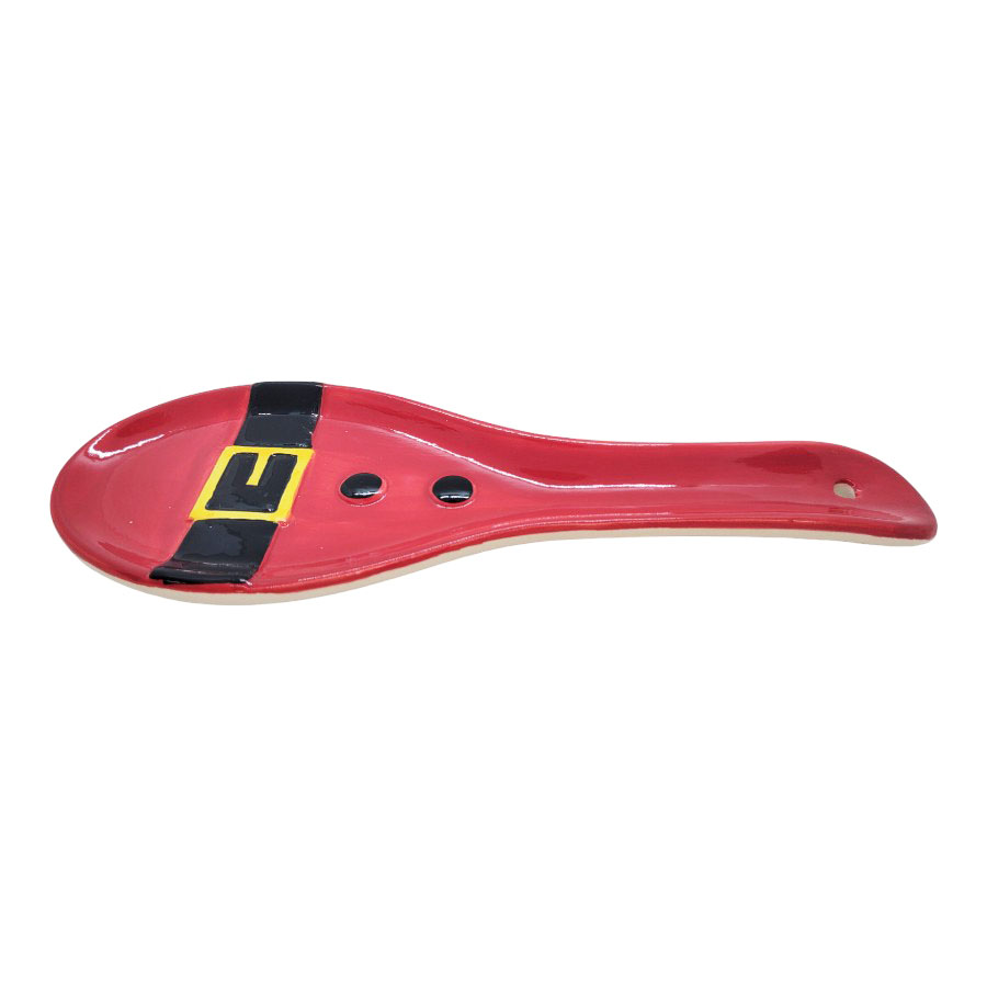 Colher decorativa em ceramica, com estampa da roupa do papai noel