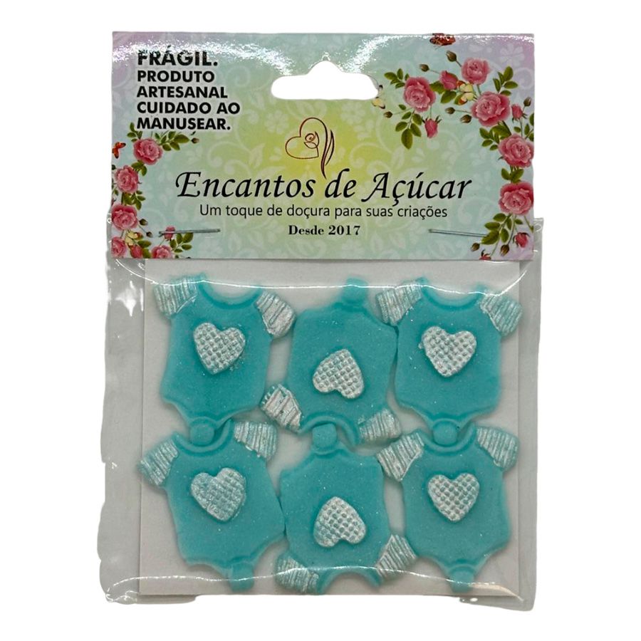 O Confeito de Açúcar "Body de Bebê" oferece uma adorável e delicada decoração para doces, especialmente aqueles destinados a comemorações de chá de bebê, festas de nascimento ou outros eventos relacionados ao mundo dos pequeninos. Cada pacote contém quatro confeitos no formato de bodies azuis de bebê, decorados com um coração central, adicionando um toque encantador aos bolos, cupcakes e outros quitutes preparados para celebrar a chegada de um novo membro à família.