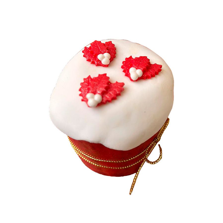 Confeitos de açúcar temático de Natal na cor vermelha com formato de folhas.