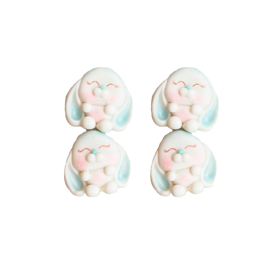 Confeitos de açúcar para páscoa em formato de coelhos na cor branco, rosa e azul