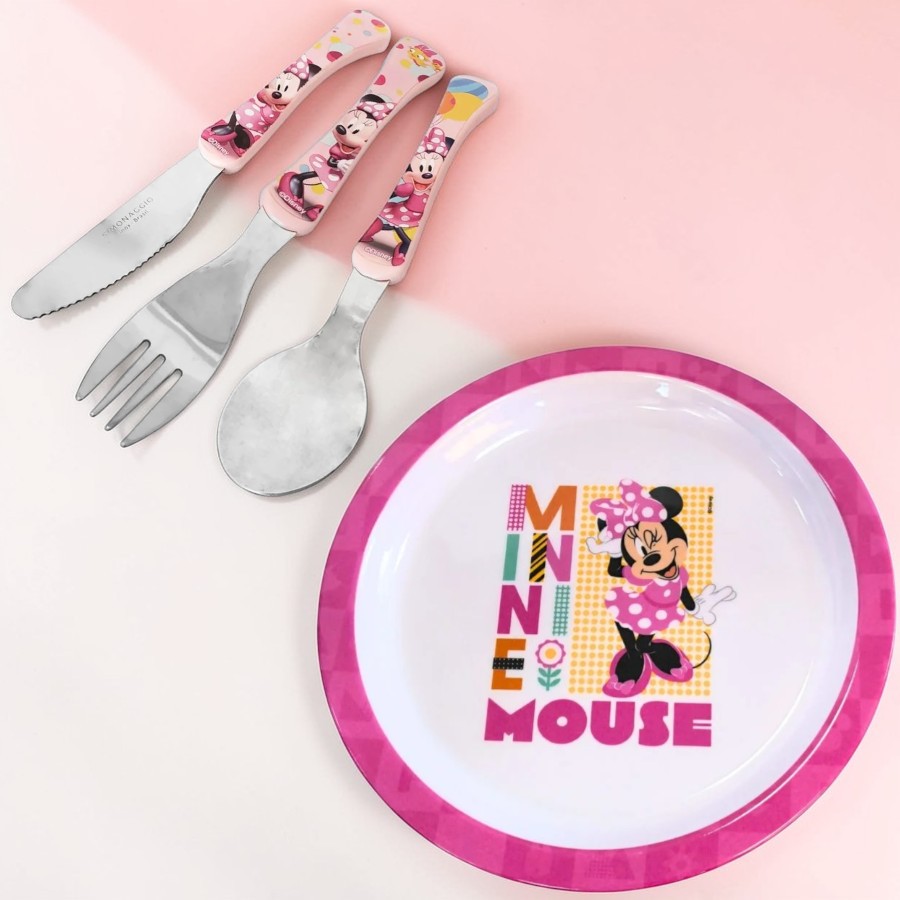 O Conjunto Talheres e Prato Fundo - Minnie Mouse é uma opção encantadora para tornar o momento das refeições mais divertido com o visual delicado da Minnie Mouse Disney. O conjunto é composto por 1 garfo, 1 colher e 1 faca licenciados Simonaggio, acompanhados de 1 prato fundo em melamine licenciado Tuut. O prato fundo é ideal para servir diferentes tipos de refeições como massas, sopas, arroz, legumes ou pequenas porções no almoço e jantar. Inspirado na Minnie Mouse Disney, o conjunto transforma a rotina alimentar em um momento mais temático, combinando utensílios práticos com o universo das personagens.