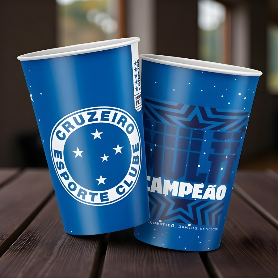 O Copo de Papel - Cruzeiro - 180ml é perfeito para torcedores que querem levar a paixão celeste para festas, eventos e comemorações temáticas. Compacto e estiloso, ele transforma qualquer ocasião em um momento divertido, personalizado e cheio de identidade, reforçando a conexão com o time.