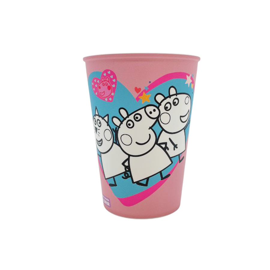 Copo decorado de plástico temático da Peppa Pig na cor rosa escuro com coração azul