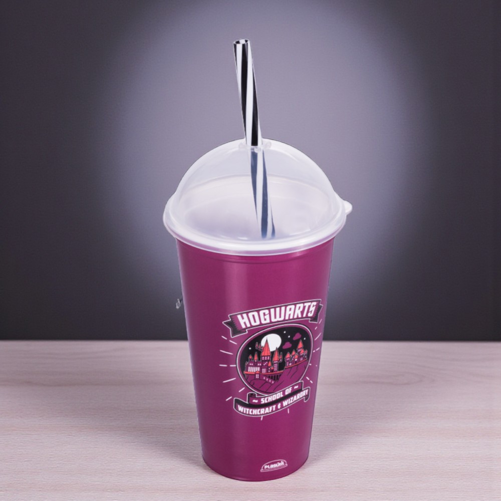 Copo com tampa e canudo, inspirado em Harry Potter.