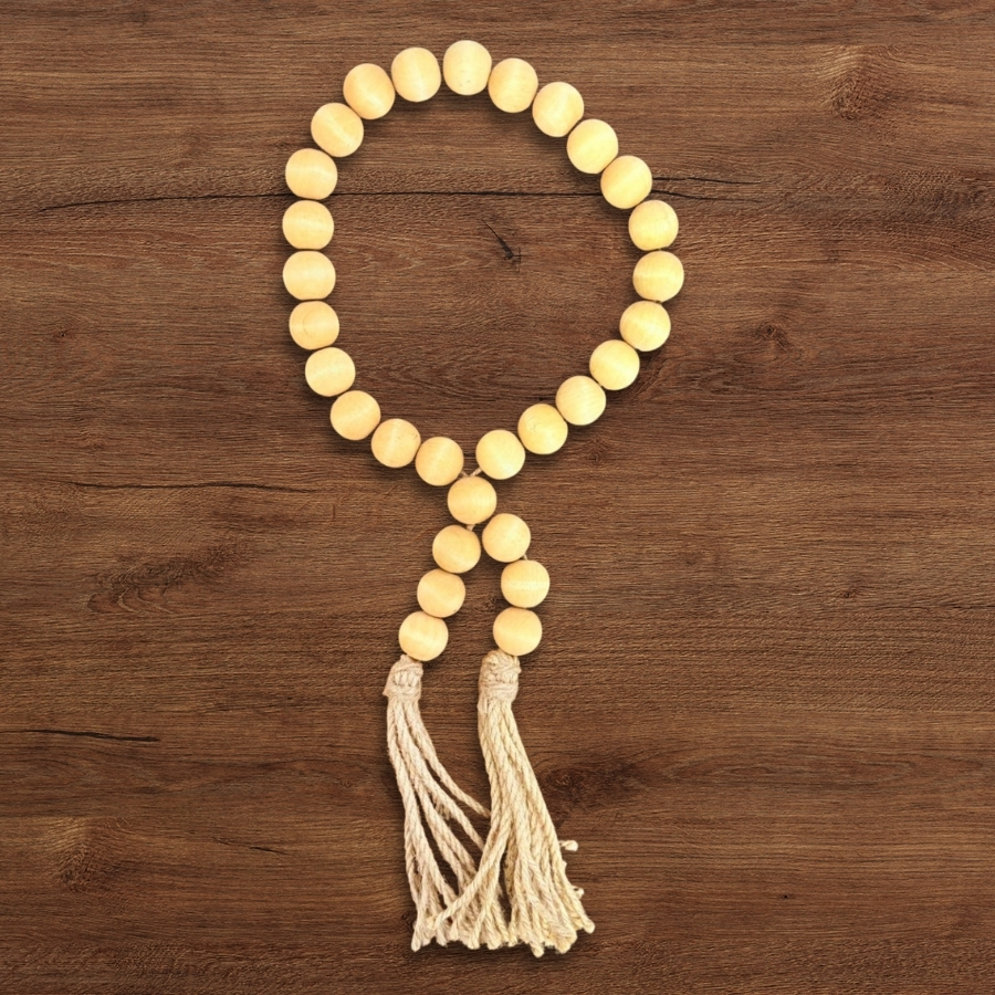Ideal para ser usado em bandejas, vasos, aparadores ou pendurado em prateleiras, o cordão decorativo cria um visual acolhedor e sofisticado. A combinação das contas de madeira com o fio de juta traz um toque artesanal e sustentável, valorizando o estilo e o equilíbrio da decoração.