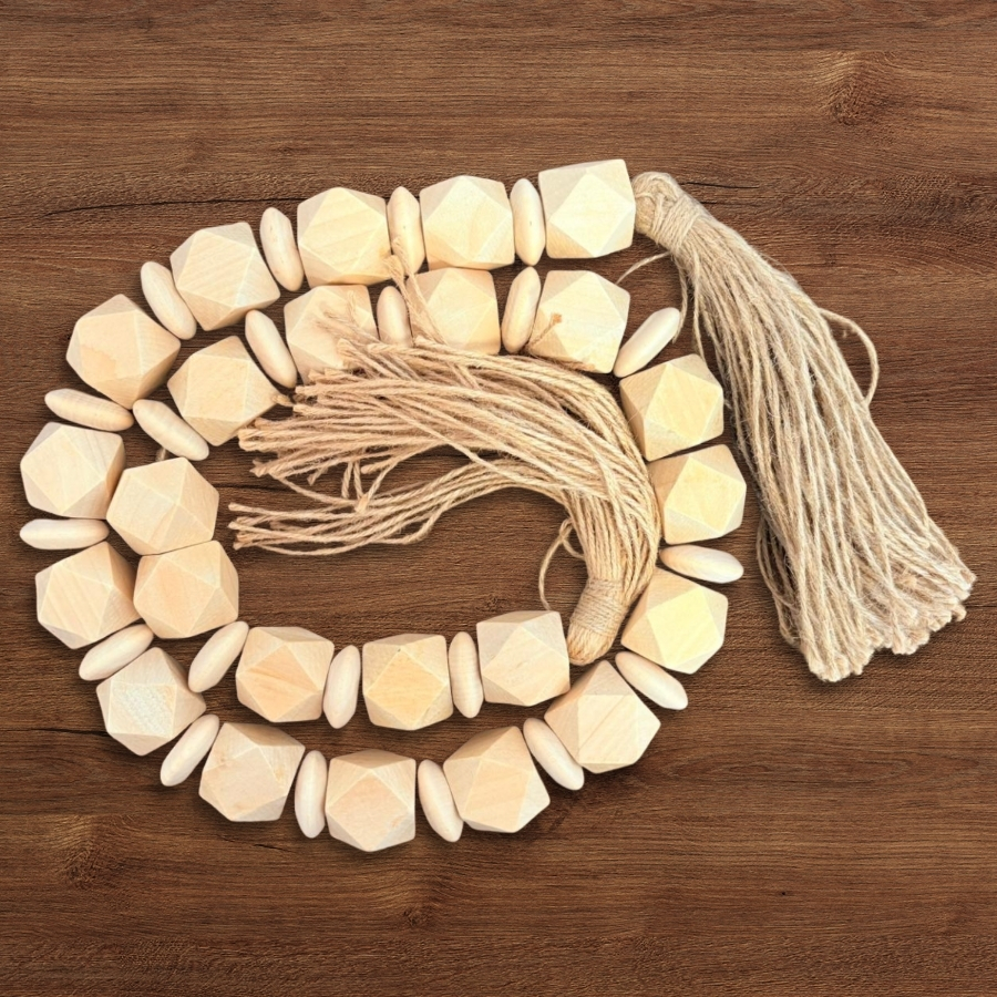 O Cordão Decorativo de Madeira e Juta, com 1,6m de comprimento, é confeccionado com contas de madeira polida e cordão de juta trançado. É uma peça resistente, durável e versátil, ideal para complementar ambientes com um toque artesanal e elegante.