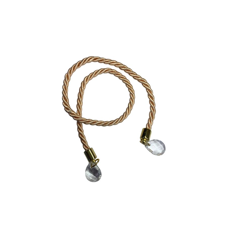 O cordão decorativo rosé com pingente dourado em formato de gota é perfeito para dar um toque especial em frascos para aromatizadores, potes de velas artesanais e kits personalizados. Com 33,5cm de comprimento, seu acabamento em cordão metalizado realça a beleza do conjunto, ideal para composições refinadas e delicadas.