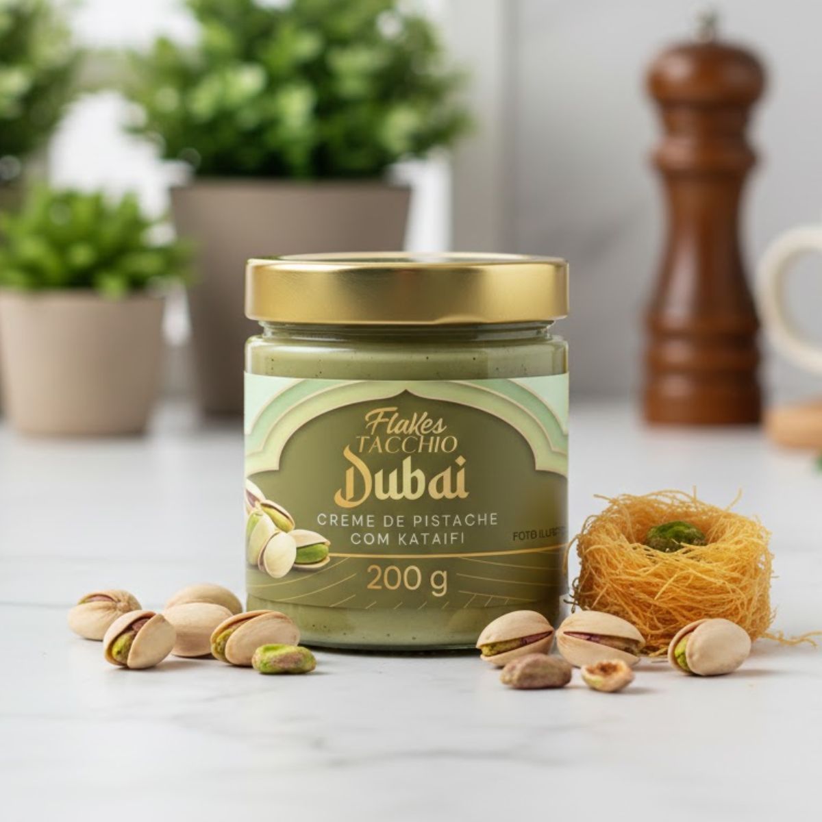 O Creme de Pistache com Kataifi Flakes Tacchio Dubai é uma combinação sofisticada que une a cremosidade intensa do pistache com a textura crocante e delicada do kataifi, criando uma experiência única inspirada na confeitaria árabe. Com sabor marcante e equilibrado, ele se destaca tanto pelo aroma quanto pelo contraste perfeito entre o creme aveludado e os flakes crocantes.