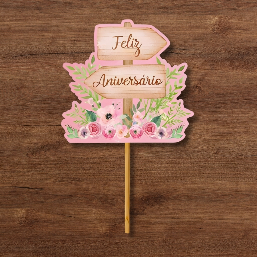 A Decoração de Bolo Meu Jardim mede 15x22cm e é confeccionada em material durável, indicada para compor bolos decorativos em festas com tema Meu Jardim ou decorações florais infantis.