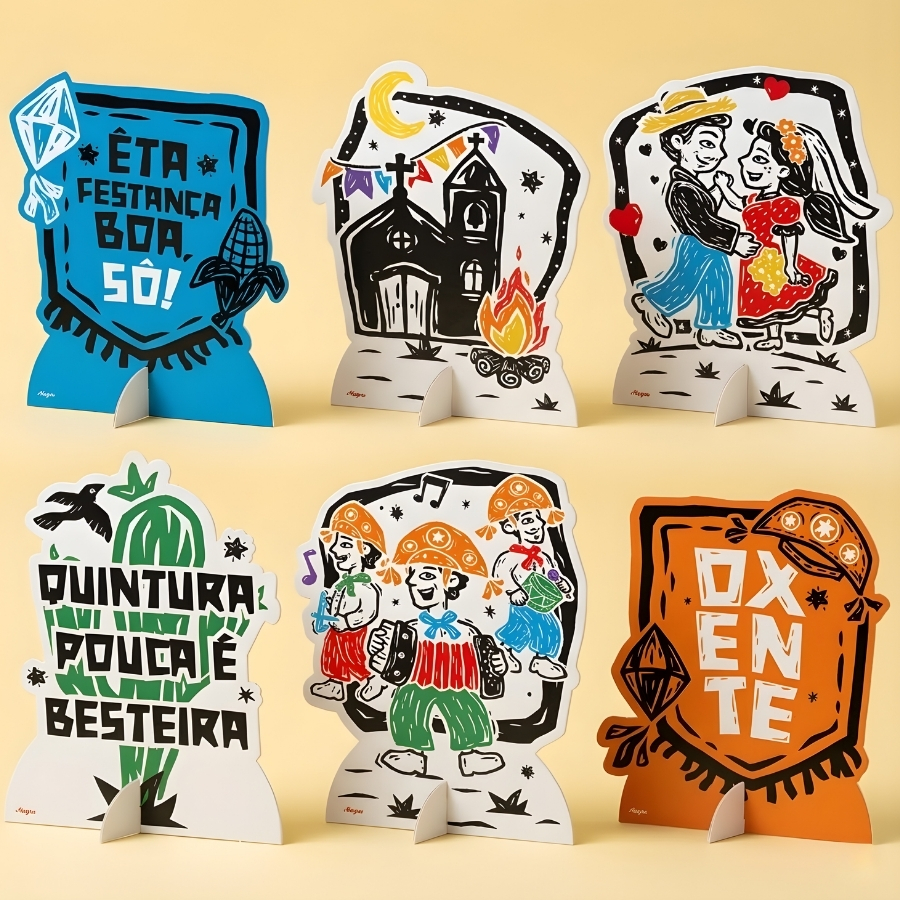 A Decoração de Mesa Cordel de São João é um item temático que ajuda a compor o clima alegre e tradicional das festas juninas. Inspirada no estilo de cordel típico das celebrações de São João, essa peça decorativa traz um visual característico que valoriza a ambientação de mesas em eventos juninos.