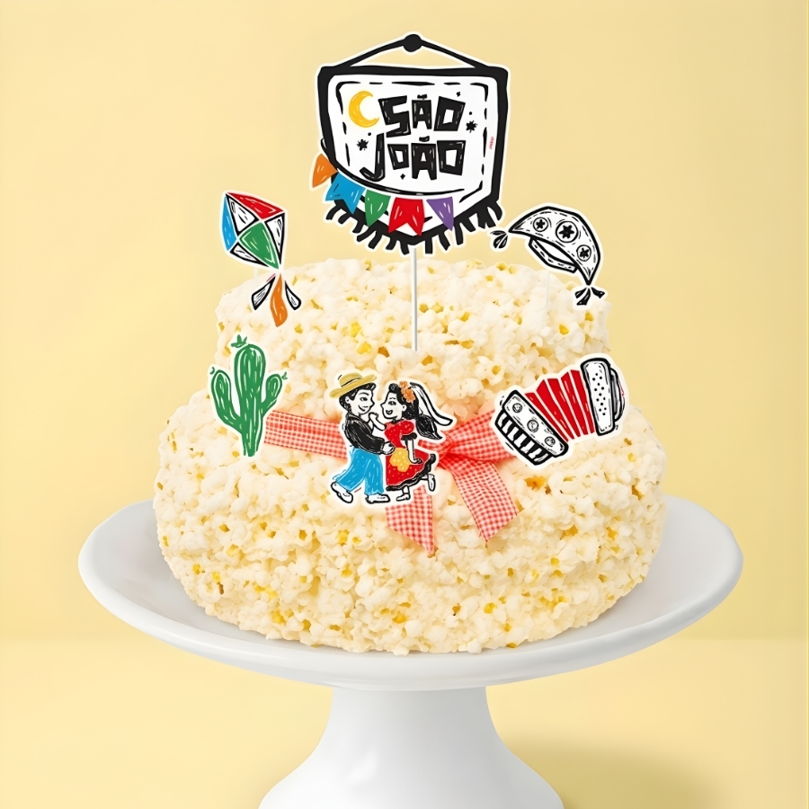 Topo decorativo para bolo com dimensões aproximadas de 10,5x21cm. Indicado para aplicação na parte superior de bolos em festas e eventos diversos. Produto destinado exclusivamente para uso decorativo. Recomenda-se inserir cuidadosamente no bolo e evitar contato com umidade excessiva para preservar o material.
