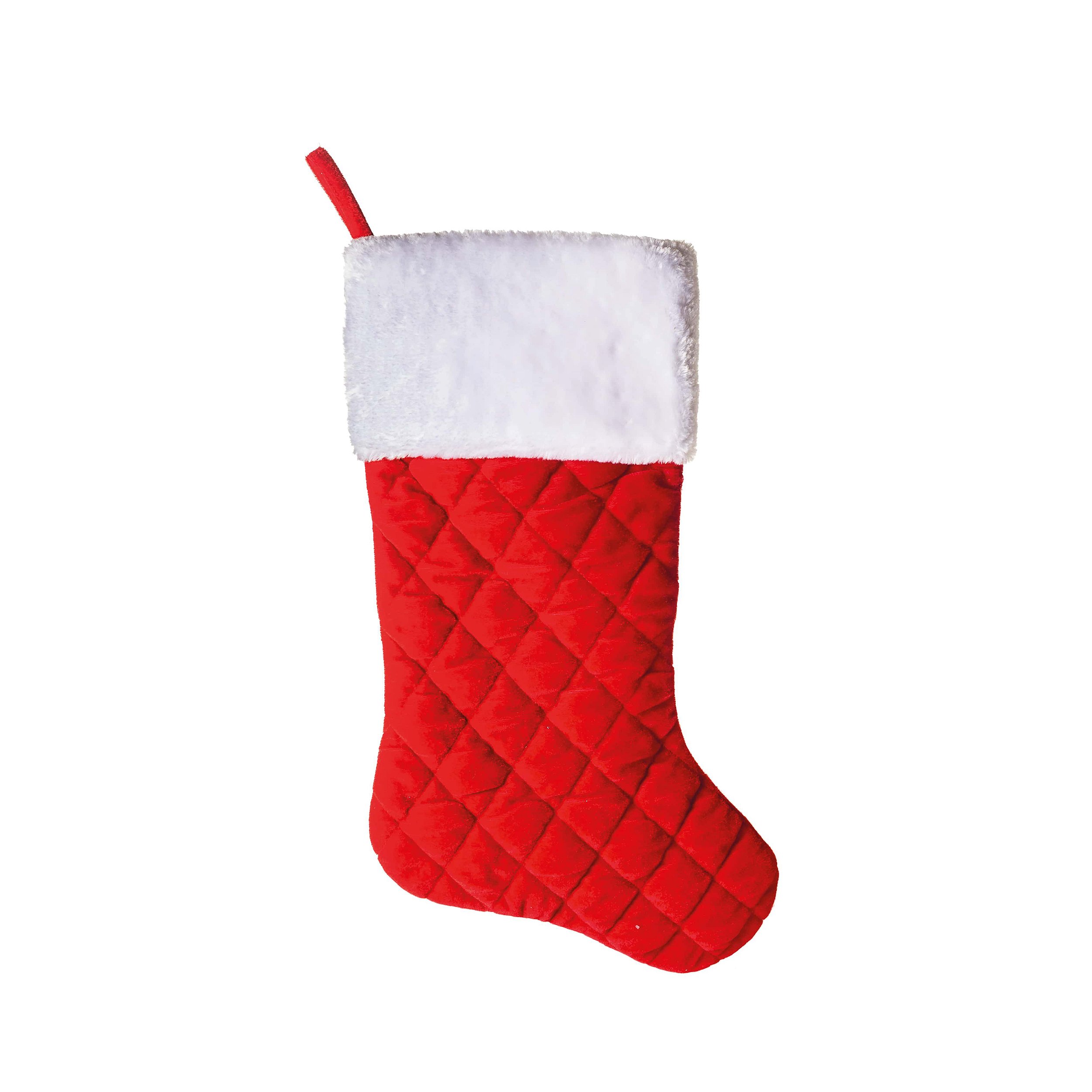 Enfeite Bota Felpuda com Quadrados Vermelho 50cm - 01 unidade - Cromus Natal - Rizzo Embalagens