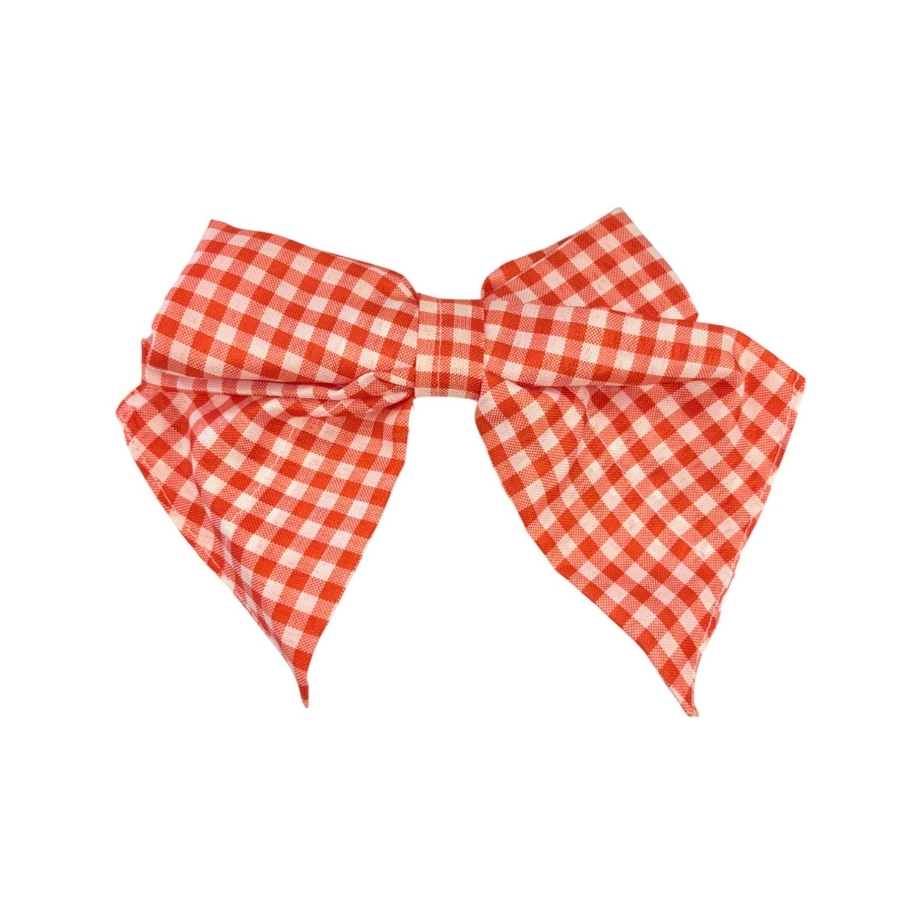 Enfeite de Cabelo Laço Pequeno Xadrez - Vermelho e Branco - 13x20cm - 1 unidade - Rizzo