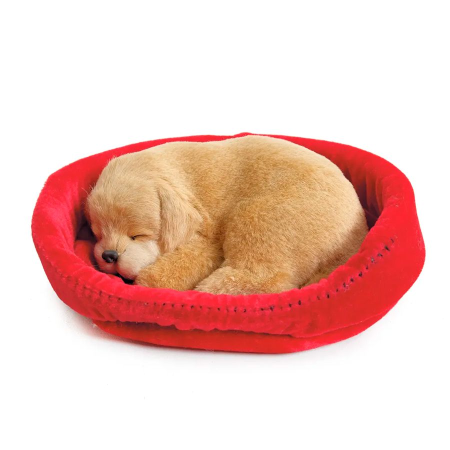 Miniatura de um cachorro dormindo tranquilamente, para enfeite