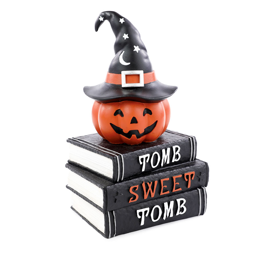 O Enfeite de Halloween de Resina - Abóbora com Livros (11x14x23cm) é uma peça charmosa e intrigante que combina elementos clássicos do Halloween com um toque literário. Este detalhe detalhado apresenta uma abóbora estilizada empilhada sobre uma pilha de livros, criando uma atmosfera acolhedora e assustadora ao mesmo tempo. Ideal para decorar mesas, prateleiras ou qualquer espaço em sua casa, ele adiciona um toque único à sua coleção de decoração de Halloween.