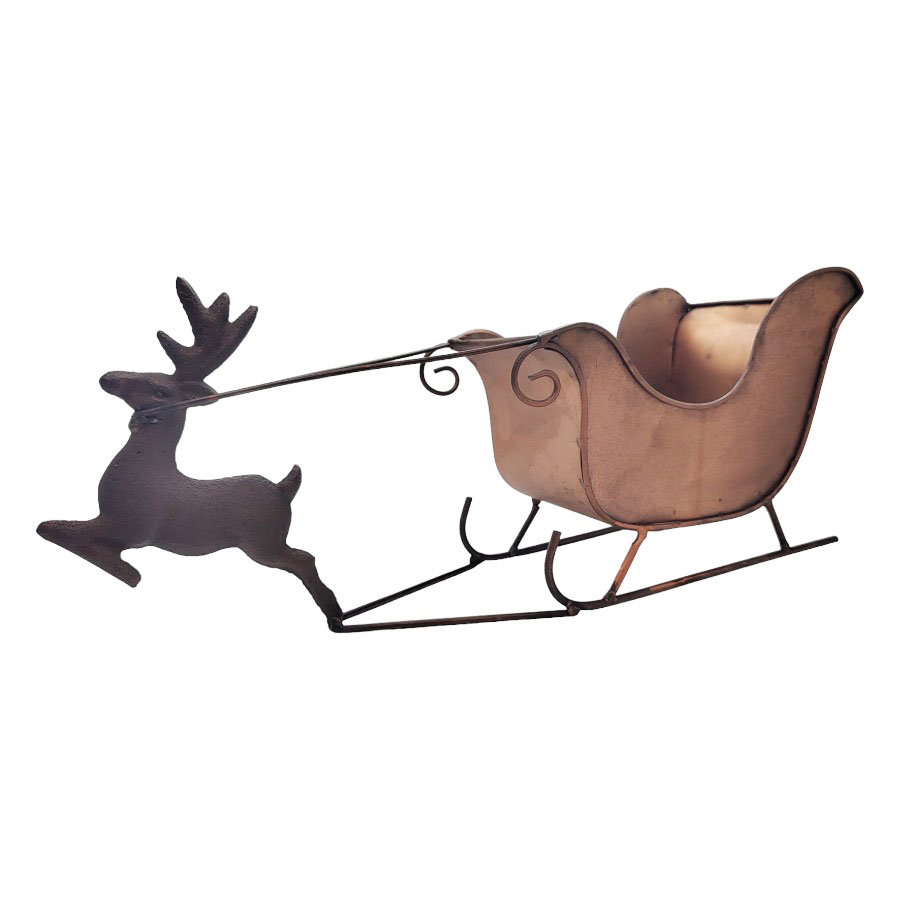 O Enfeite Decorativo de Natal "Mini Trenó com Rena de Metal" de 14x35cm é uma peça elegante e versátil que adiciona um toque encantador e prático à sua decoração natalina. Com um design detalhado de trenó metálico puxado por uma rena, este enfeite não só enriquece o visual do seu ambiente, mas também serve como um suporte decorativo funcional.