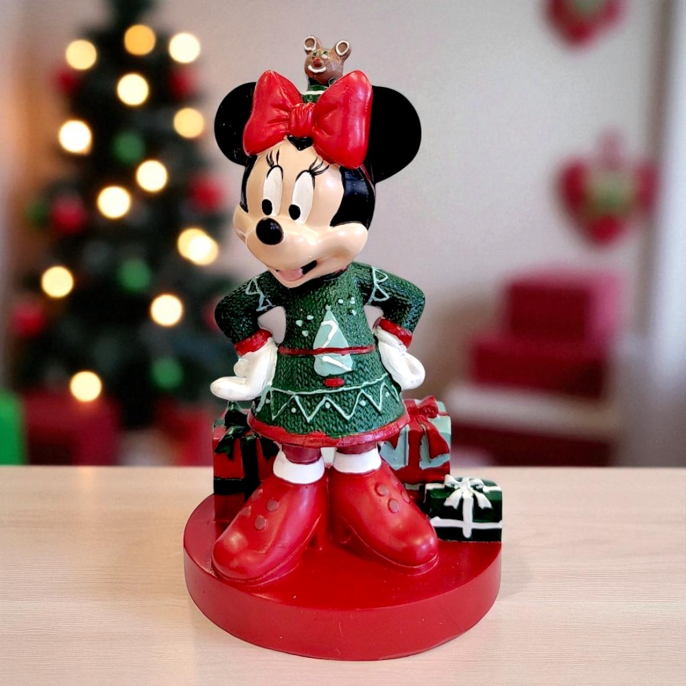 Ideal para destacar mesas temáticas, árvores de Natal e guirlandas, este enfeite combina a delicadeza da Minnie com o clima festivo do Natal Disney. Uma peça especial para quem deseja tornar a decoração de Natal ainda mais mágica e envolvente, podendo ser combinada com outros personagens para uma composição completa.