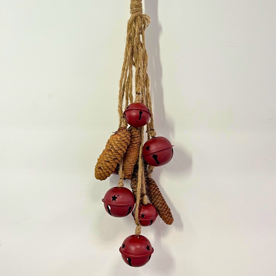 Decoração Sinos Natalinos Presos em Corda - Vermelho - 70cm, uma peça festiva e encantadora, ideal para complementar sua decoração natalina com um toque de brilho e alegria.