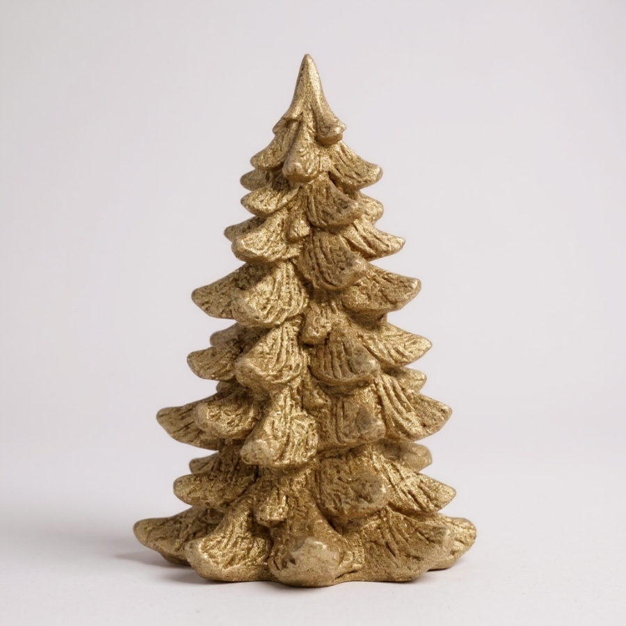 A Decoração de Natal - Pinheiro de Ouro com Glitter - 26x16x16cm é a peça ideal para quem deseja dar um toque de sofisticação e brilho à celebração natalina. O acabamento em dourado com glitter transforma o ambiente, trazendo elegância e encantamento para mesas, aparadores, estantes ou vitrines.