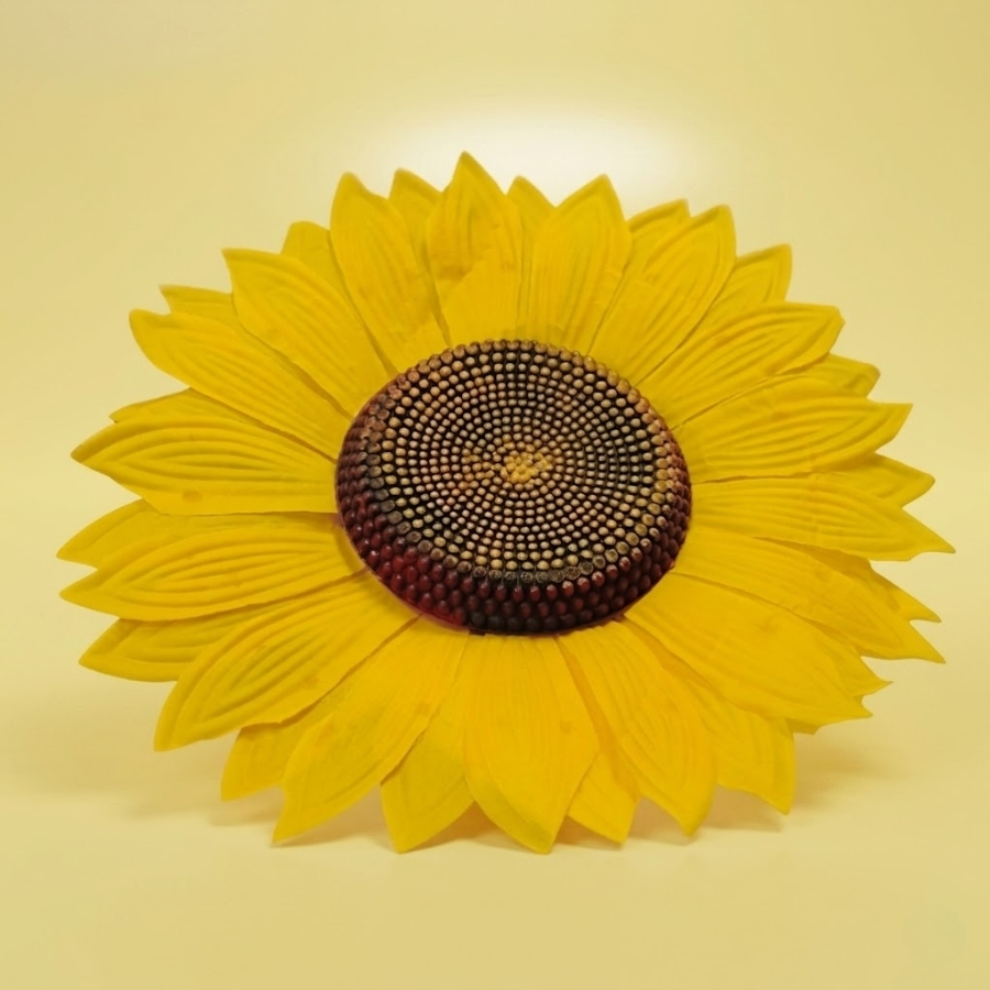 Enfeite confeccionado em papel, no formato de girassol decorativo. Possui dimensões aproximadas de 40cm de altura e 40cm de largura. Indicado exclusivamente para uso decorativo. Recomenda-se manter em local seco e evitar contato com umidade ou água, pois o material pode ser danificado. Não indicado para uso externo em condições climáticas adversas.