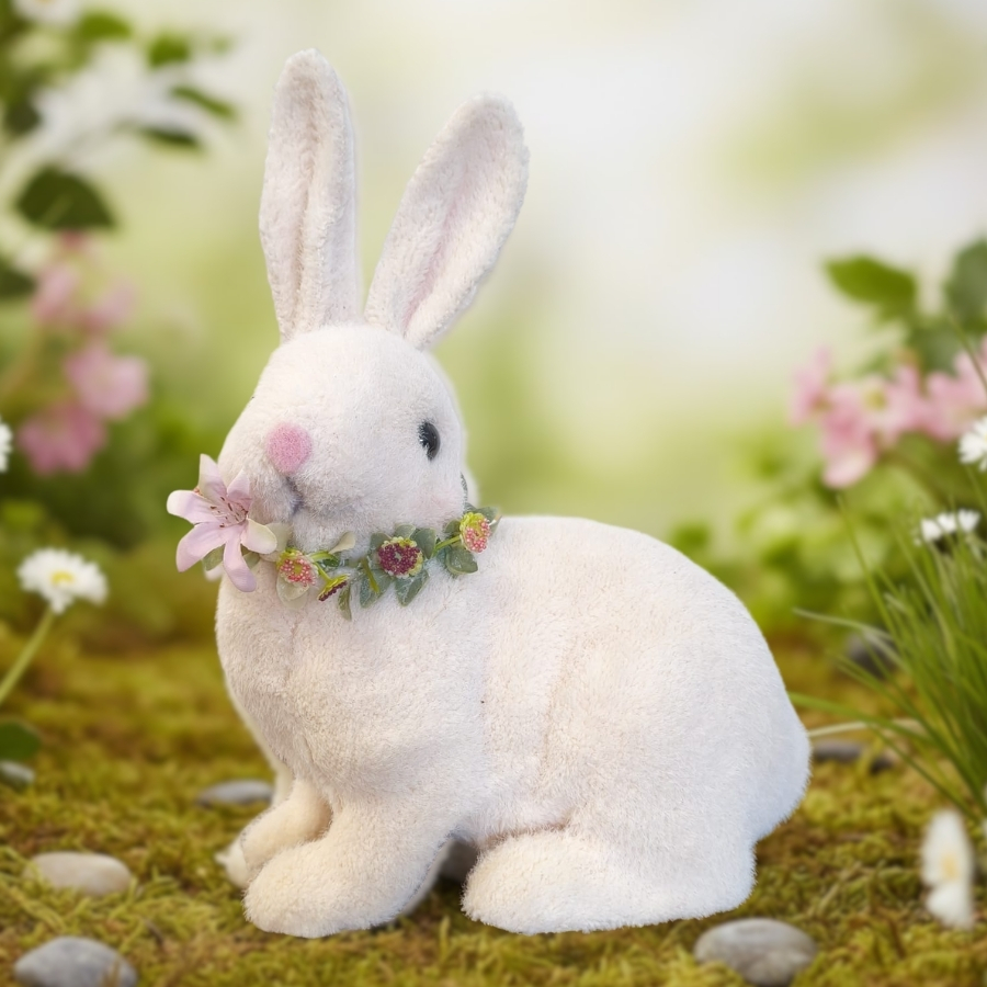 Indicado para decoradores, lojistas, organizadores de eventos e consumidores finais, este enfeite resolve a necessidade de trazer o clima de Páscoa de forma prática e harmoniosa. O coelho com colar de flores agrega um toque alegre e decorativo, facilitando a montagem de cenários temáticos sem a necessidade de muitos acessórios adicionais.