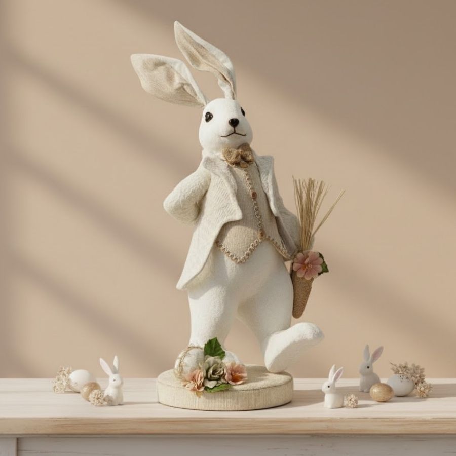 Enfeite Decorativo de Páscoa - Coelho em Pé com Terno Rendado Branco - Linha Realeza Premium - 40x21x27cm - 1 unidade -