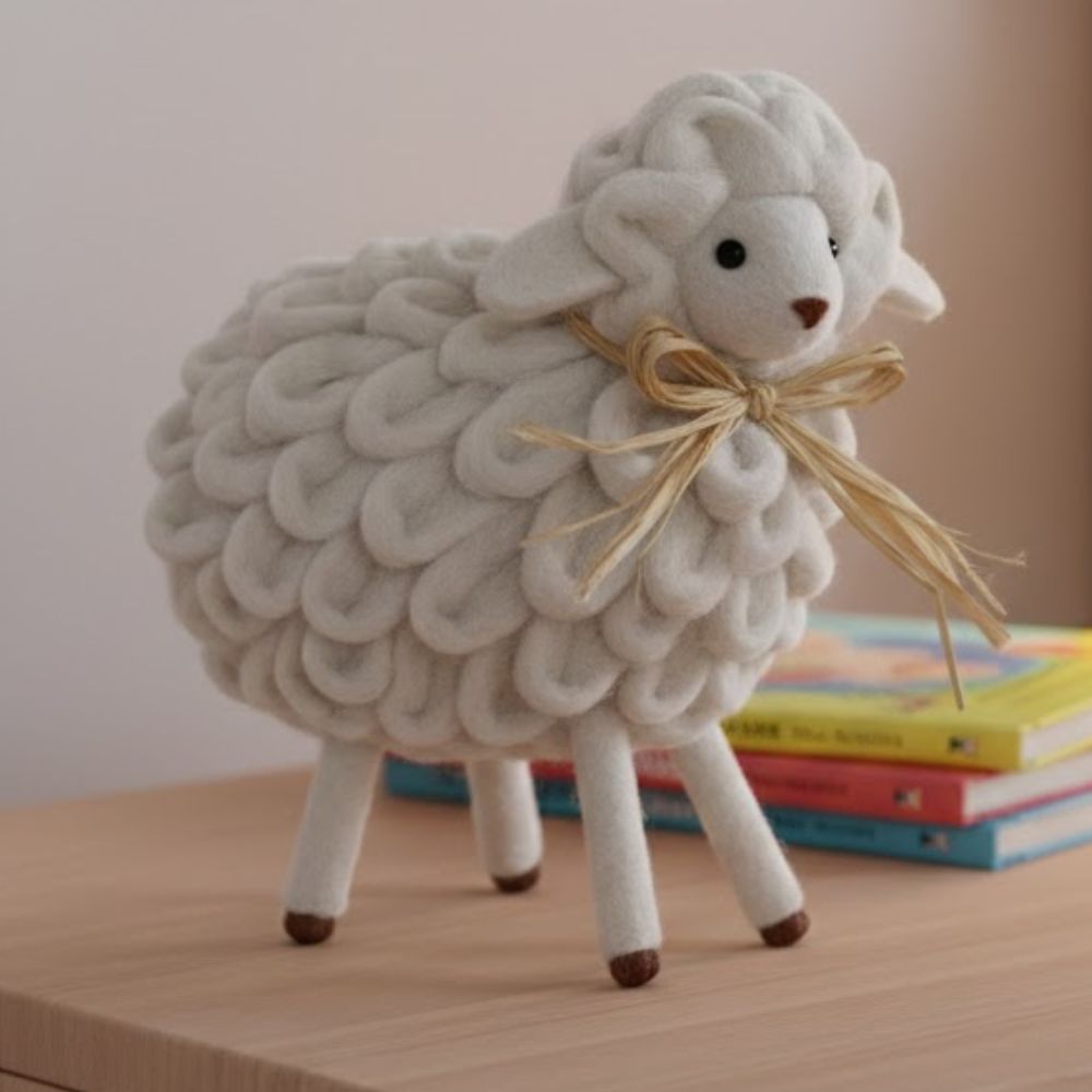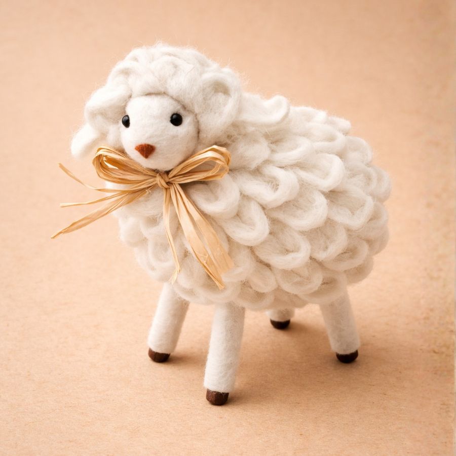 Utilize a ovelhinha decorativa em conjunto com outros elementos naturais, como palha, madeira e tons suaves, para criar uma decoração harmoniosa e acolhedora.