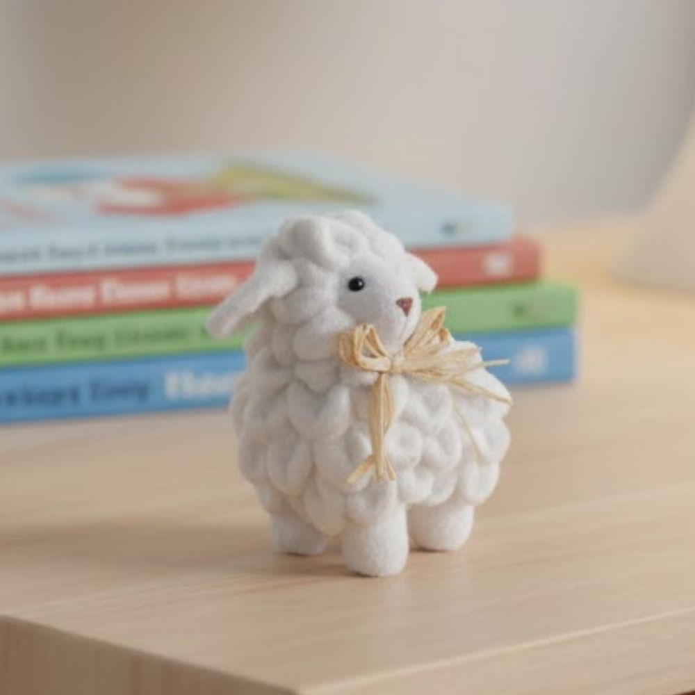O Enfeite Decorativo Ovelhinha é uma peça delicada e cheia de charme, perfeita para compor decorações temáticas com um toque fofo e acolhedor. A ovelhinha possui uma charmosa gravata de palha, que acrescenta um visual rústico e delicado à peça.