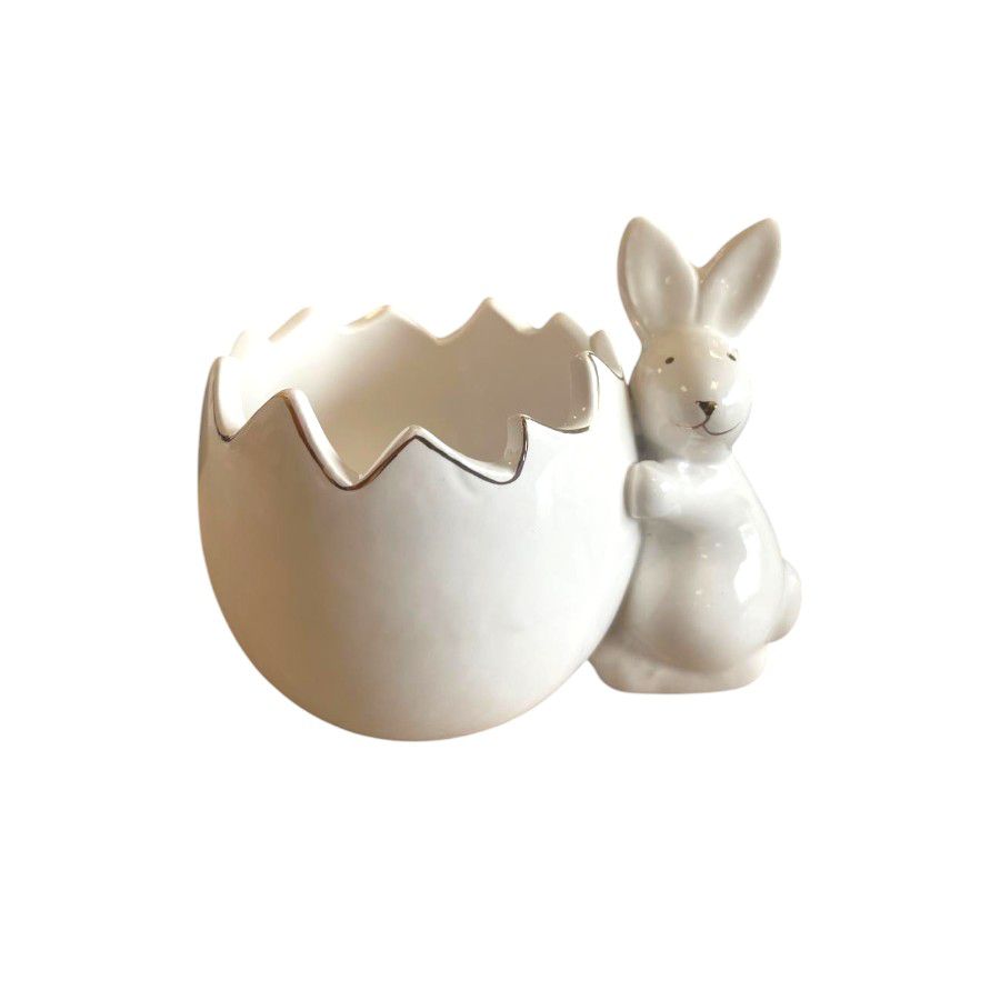 Enfeite decorativo de Páscoa, ovo e coelho de cerâmica branca, 9cm. Um item delicado e encantador para a sua decoração.